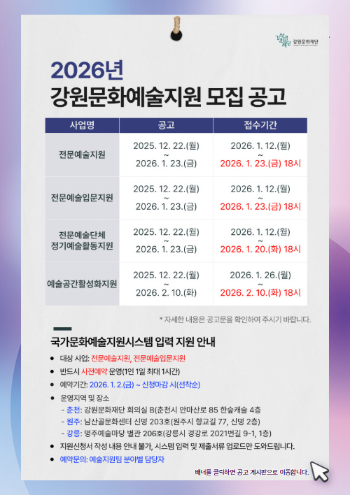 ❤️2026 강원문화재단 지원사업 신청?! 쉽게 알려드립니다!❤️
